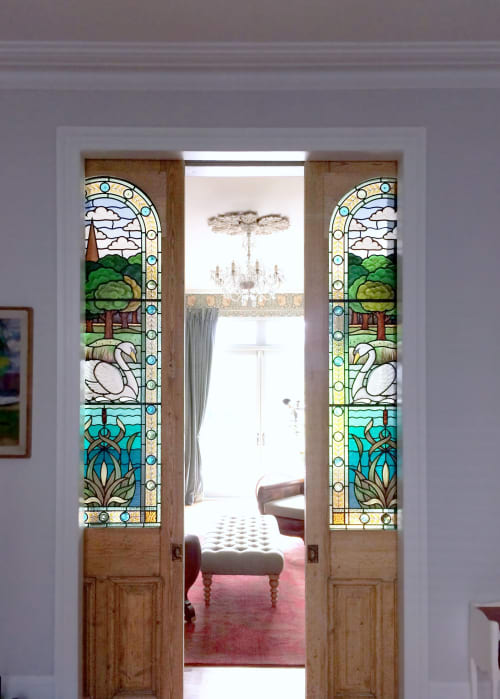Swan And Pond Stained Glass Door Panels Private Home Hampstead London Interior Design By Berdoulat Interiors By Flora Jamieson Stained Glass Seen At Private Residence London Wescover