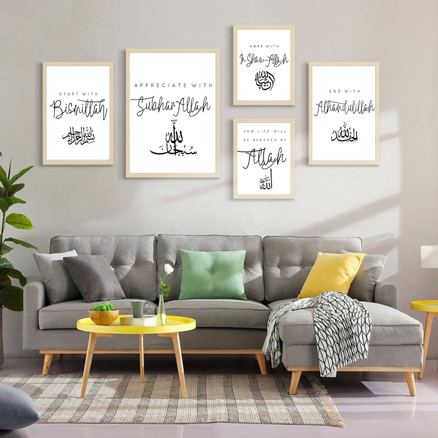 Islamic Decor Wall Artwork Printed Canvas Painting Modern Calligraphy Posters Muslim Home Nordic Style Simple Shopee Singapore